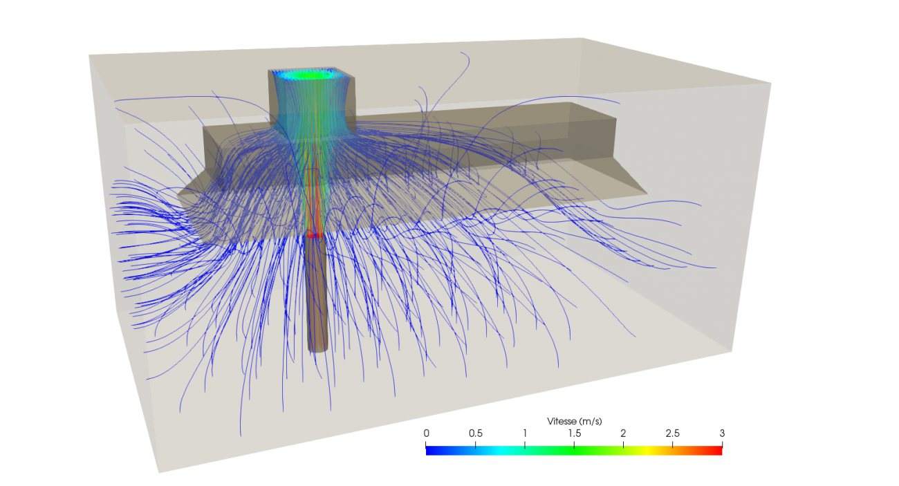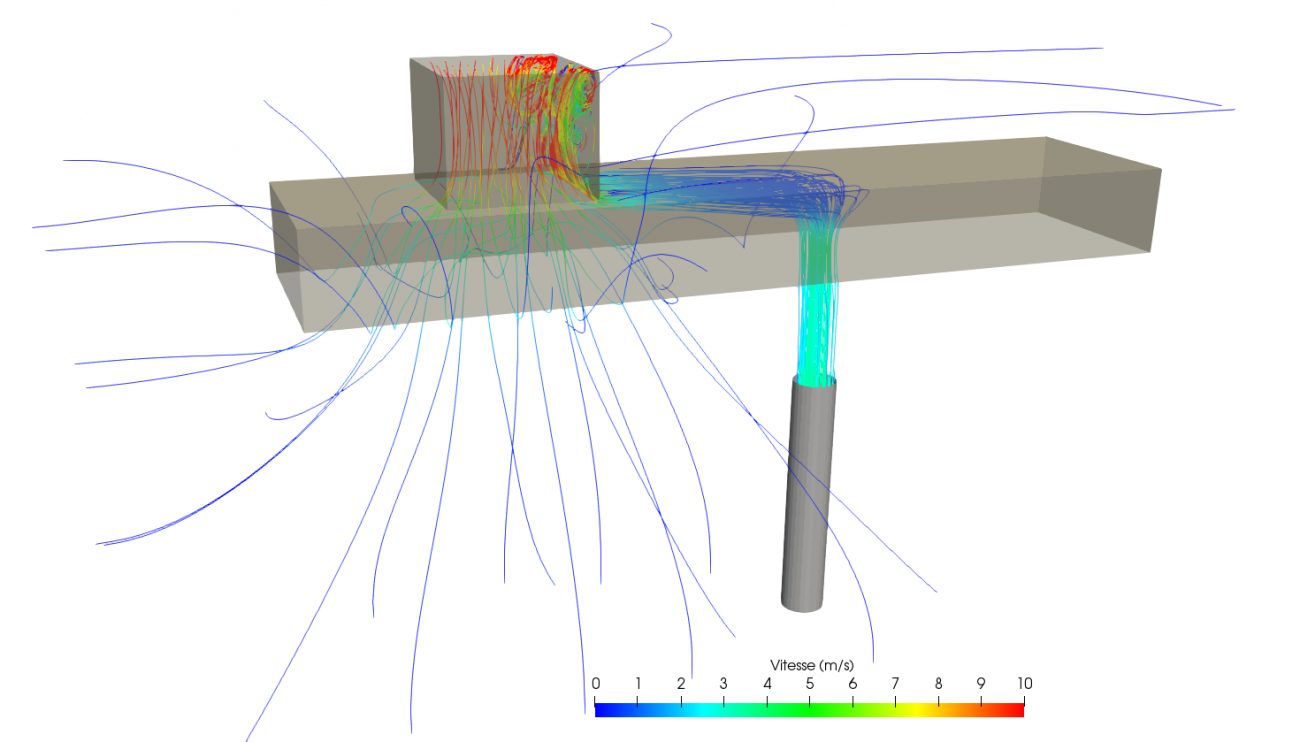 Pour se faire, des modélisations tridimensionnelles de l’aspiration des fumées par les différentes hottes ont été réalisées. Ces modélisations sont basées sur un modèle 3D de type mécanique des fluides numérique (CFD) afin de prendre en compte la complexité de la géométrie des hottes.